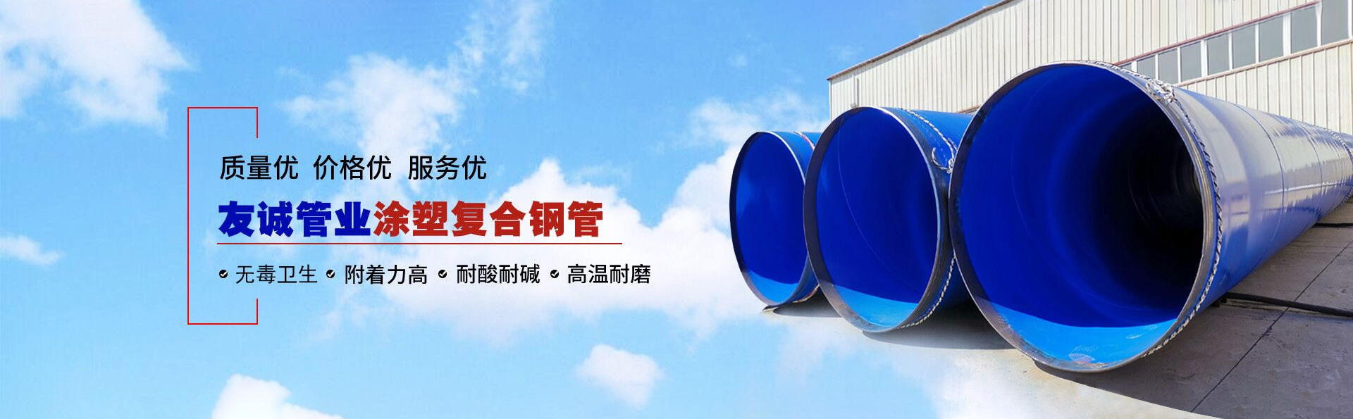 滄州友誠管業(yè)有限公司是一家專業(yè)從事生產(chǎn)防腐涂塑管道及管件于一體的大型企業(yè)。公司注冊(cè)資金8600萬元,位于中國管道生產(chǎn)基地—河北鹽山縣,近靠京滬高速、榮烏高速、黃石高速30公里,高鐵滄州西站40公里,天津國際機(jī)場(chǎng)、濟(jì)南遙墻機(jī)場(chǎng)150公里,為客戶來訪及業(yè)務(wù)發(fā)展提供了便利的交通條件。        鋼管系列:螺旋鋼管、無縫鋼管、ERW直縫焊管、JCOE埋弧焊直縫鋼管、熱鍍鋅鋼管。        涂塑系列:內(nèi)外涂塑鋼管、涂塑復(fù)合鋼…… 了解更多